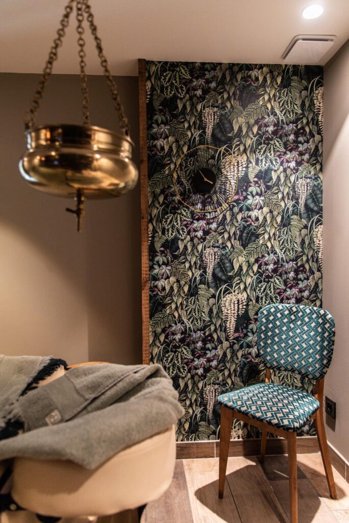 Agence Amevet intervient en cours de réalisation, « sur des espaces déjà définis », où elle s’attache à traduire les attentes du client : l’esprit hygge, mais aussi la présence du piano, fétiche du propriétaire. Les parties communes rassemblent sur un même plateau ouvert, l’accueil, le salon, le restaurant gastronomique et locavore à la façade de verre, du chef Marc Guy ; le bar, en position central, avec un mélange de bois et de lignes contemporaines… Deux cheminées, l’une à 3 faces, l’autre ronde, réchauffent l’ensemble et accentuent l’atmosphère cosy… Au sous-sol, on trouve l’espace wellness, qui propose massages ayurvédiques, piscine chauffée, caisson de sudation… L’espace séminaire, polyvalent et adapté à l’organisation d’événements familiaux… Tout est doux, calme, dominé par des camaïeux blanc, beige, rehaussés de touches de couleurs.