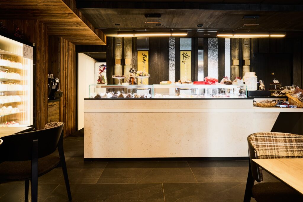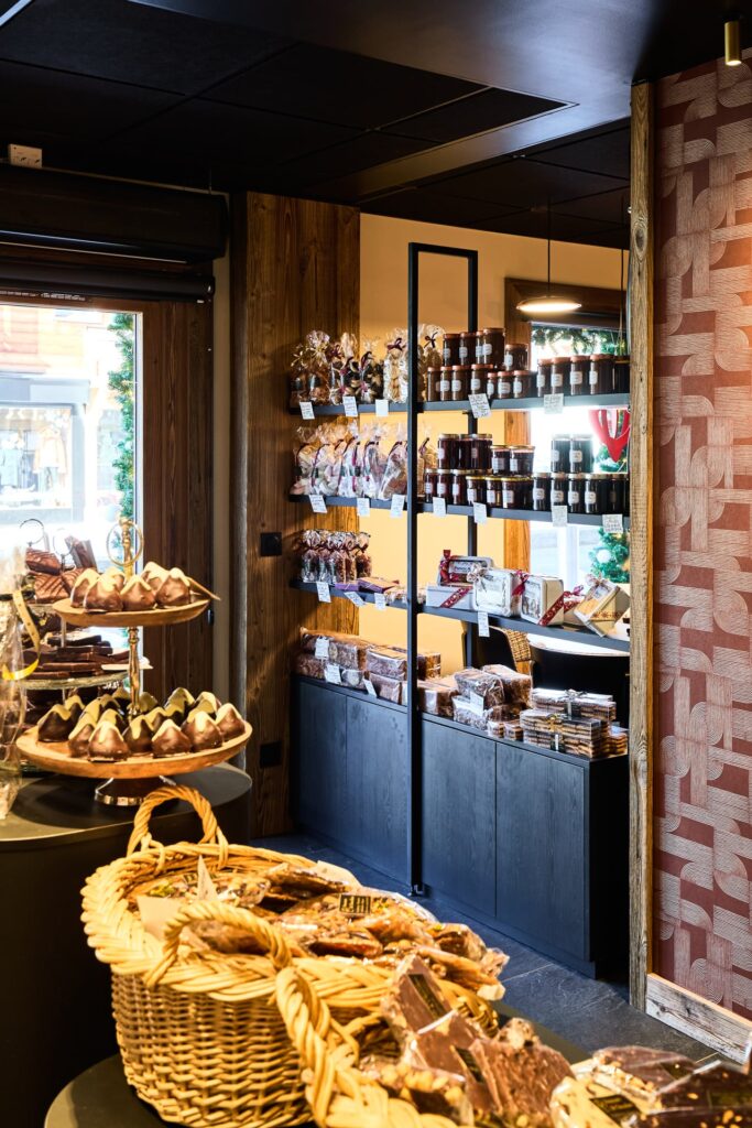 La montée en gamme s’est organisée autour d’une idée-force : sublimer le chocolat sous toutes ses formes. « L’idée n’était pas d’en faire plus, mais de faire mieux », précise Élodie. « Nous avons travaillé sur un style épuré, à la fois authentique et contemporain, ancré dans l’esprit montagnard avec du vieux bois, mais ponctué de touches modernes qui mettent en valeur le produit. »