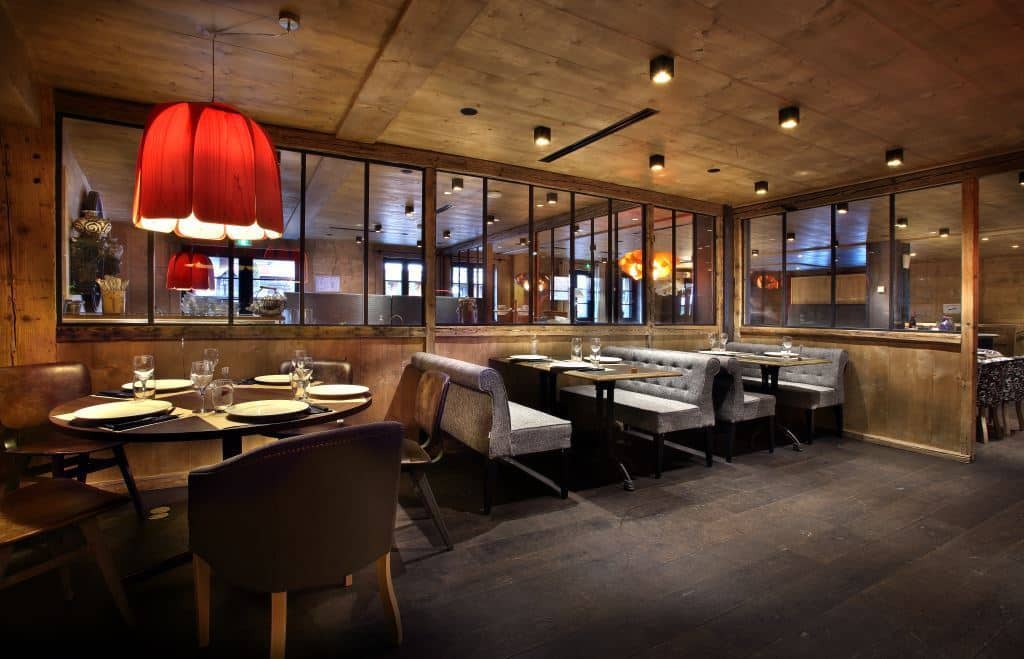 Dans la partie restauration traditionnelle savoyarde, ils ont intégré des appareils à raclette positionnables et installé des armoires de maturation à viande dans la zone grillade. Une cuisine ouverte, équipée de fours « Jasper », a également été placée en partie centrale. Pour l’aménagement de ce restaurant, nos architectes d’intérieur se sont aussi attachés à concevoir un espace modulable : la salle principale est équipée de parois vitrées démontables, amovibles. Ceci offre l’opportunité de délimiter des espaces intimes pour l’organisation d’événements privés. A l’inverse, cette modularité permet de proposer un espace beaucoup plus ouvert pour l’accueil de groupes, de mariages…