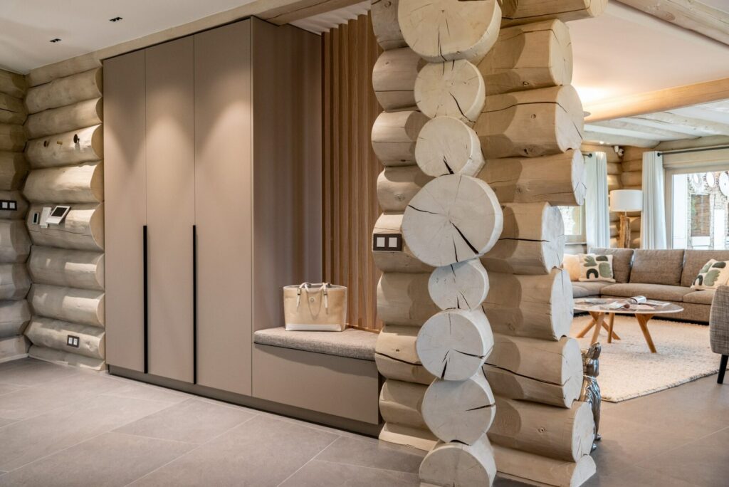 Au centre de l’espace de vie, le pilier central, constitué par le croisement de fustes, a été conservé : si cet élément pouvait être une contrainte dans l’organisation, nos architectes d’intérieur ont au contraire souhaité le mettre en avant.